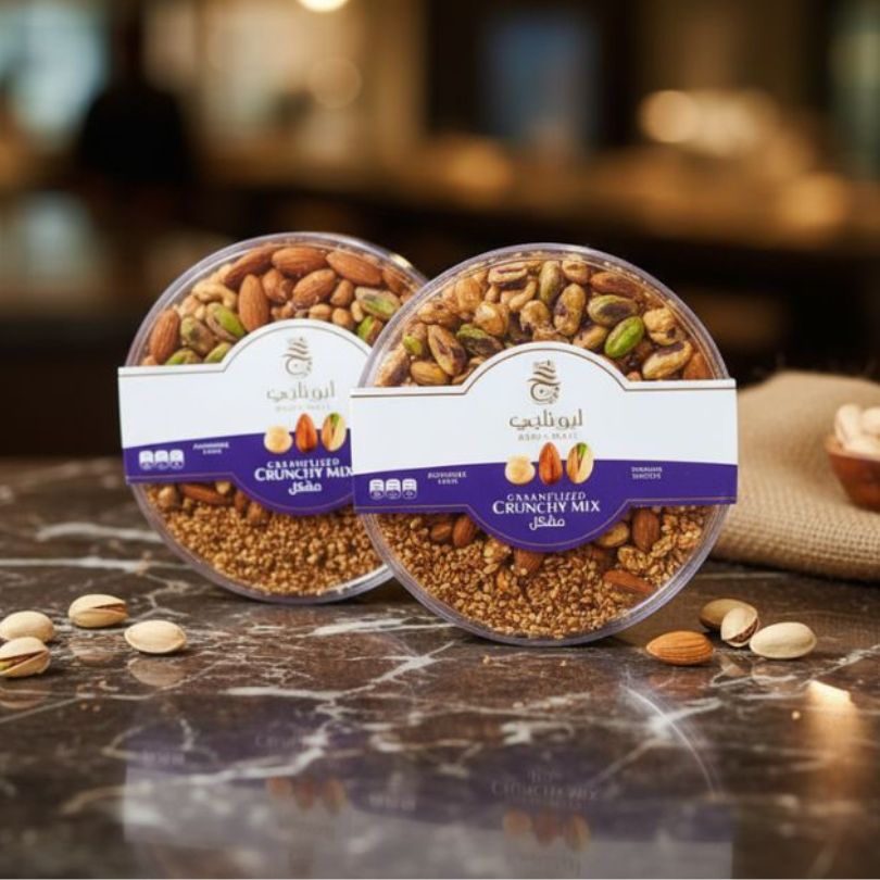 Disfruta de la combinación perfecta entre sabor y textura con Abou Naji Caramelized Crunchy Mix, una mezcla premium de nueces cuidadosamente seleccionadas y caramelizadas para brindar un toque crocante y dulce en cada bocado.