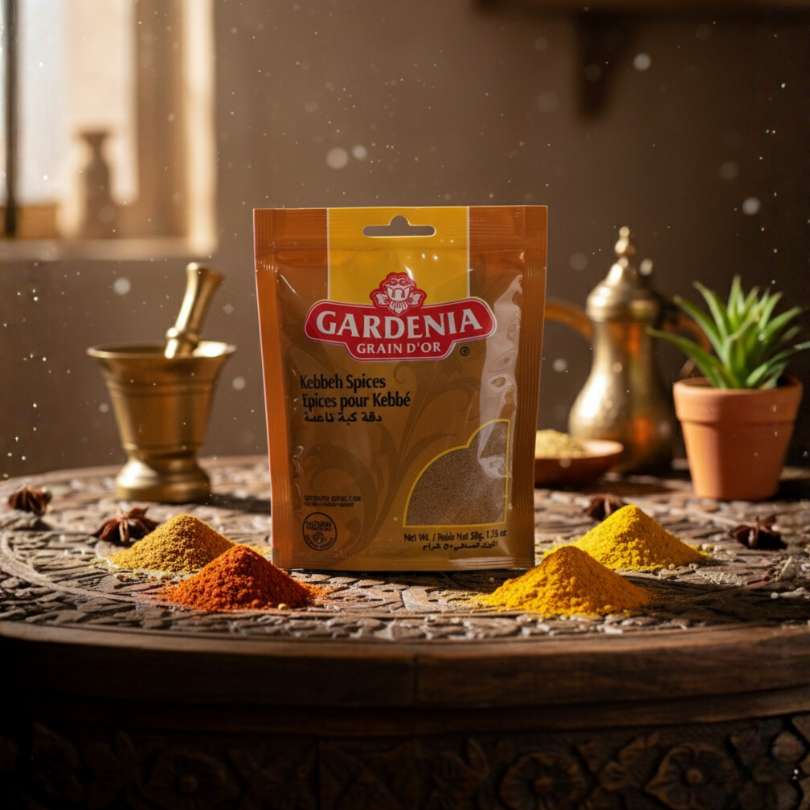 La mezcla de Especias para Kibbeh (Kebbeh Spices o Épices pour Kebbé) de Gardenia Grain D'Or es el condimento especializado que define el sabor del Kibbeh, el plato nacional libanés. Esta mezcla finamente molida es esencial para sazonar tanto la capa exterior de carne y bulgur, como el relleno interior.