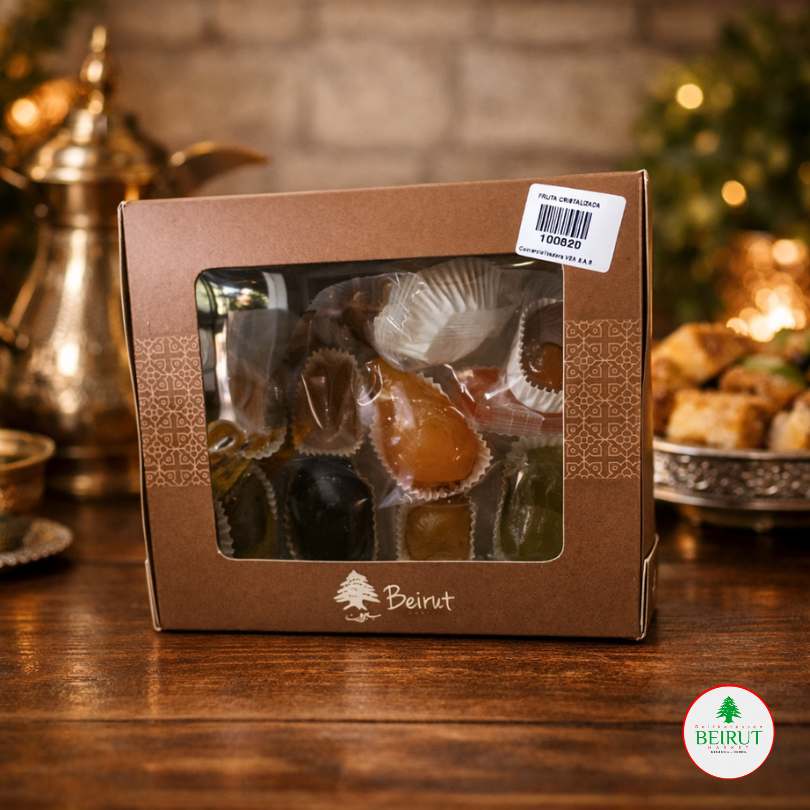 Una joya de la repostería tradicional árabe en tu mesa. Este surtido de Fruta Cristalizada de Beirut Market ofrece una experiencia gourmet única, donde la fruta natural es conservada mediante un delicado proceso artesanal que mantiene su esencia y textura.